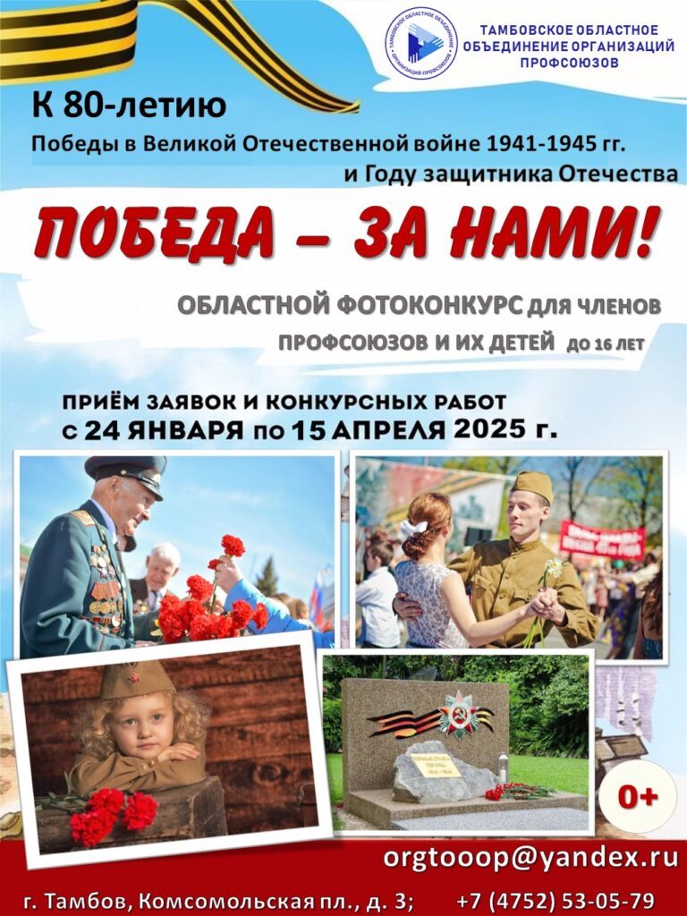 Тамбовское Профобъединение объявляет областной фотоконкурс «Победа – за нами!», посвященный Году защитника Отечества и 80-летию Победы в Великой Отечественной войне 1941 – 1945 гг.